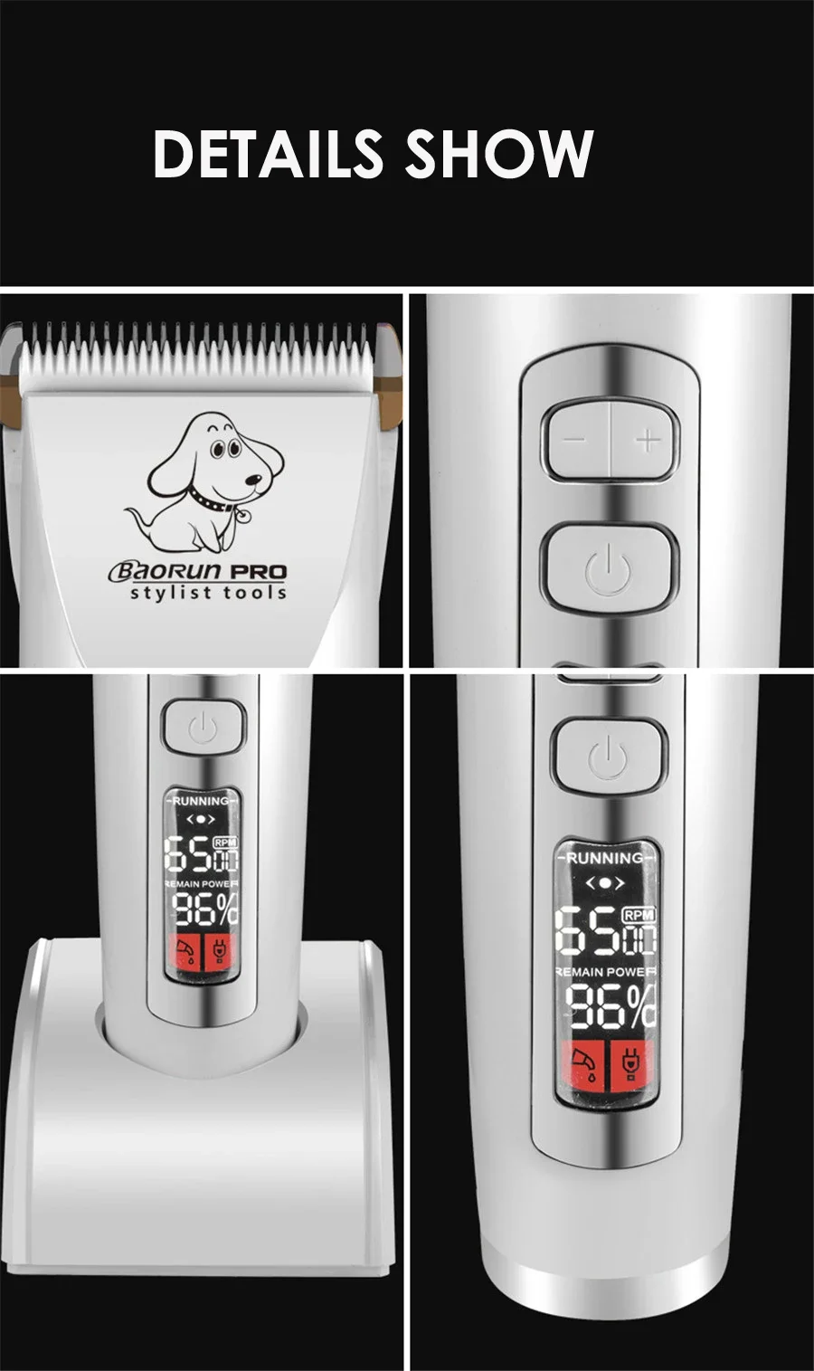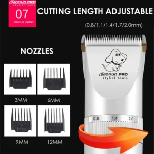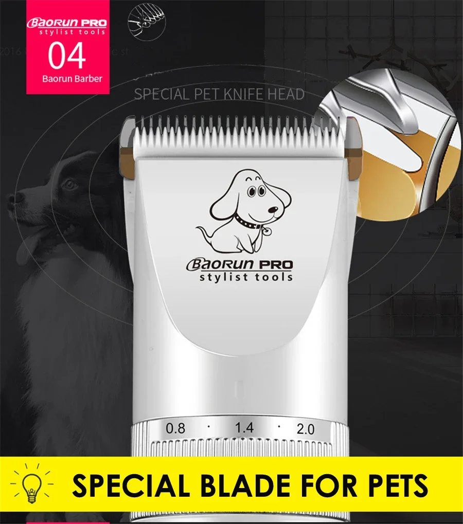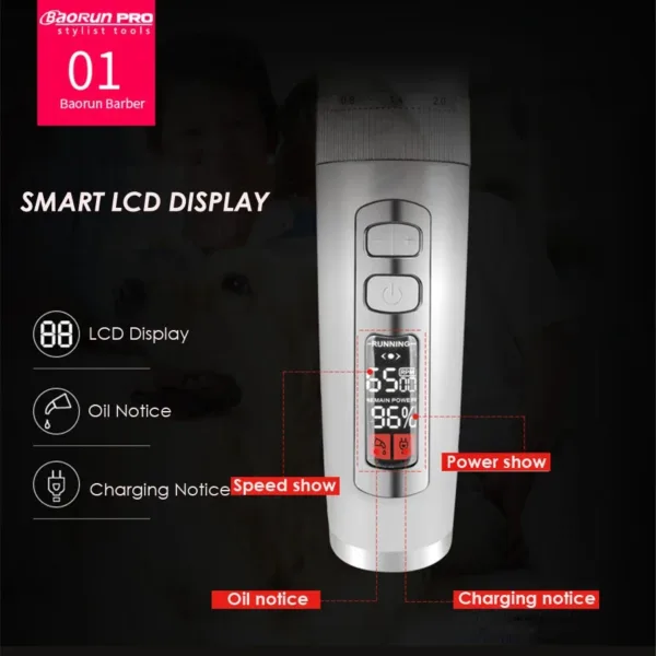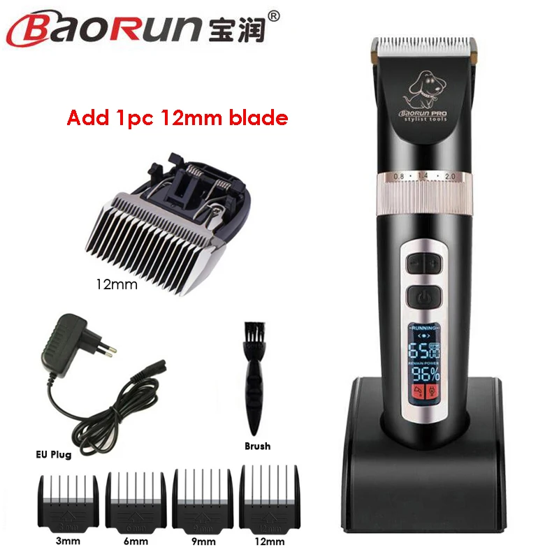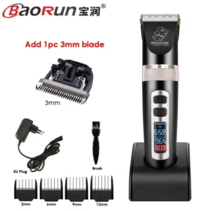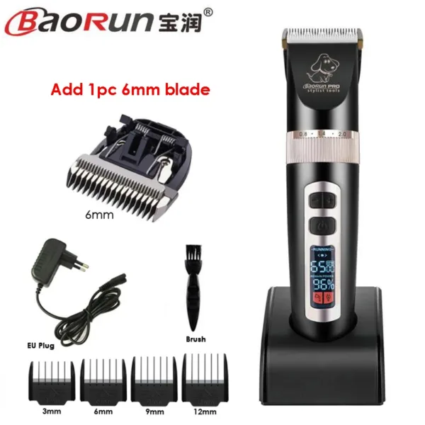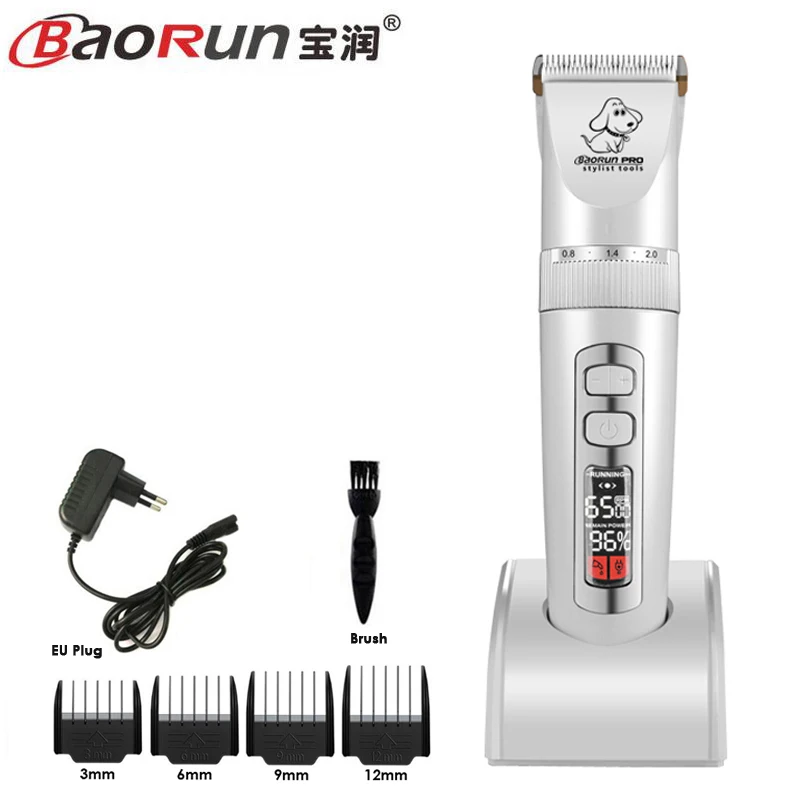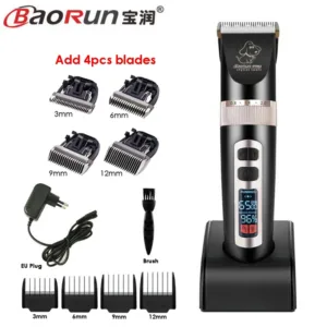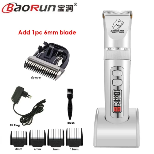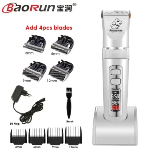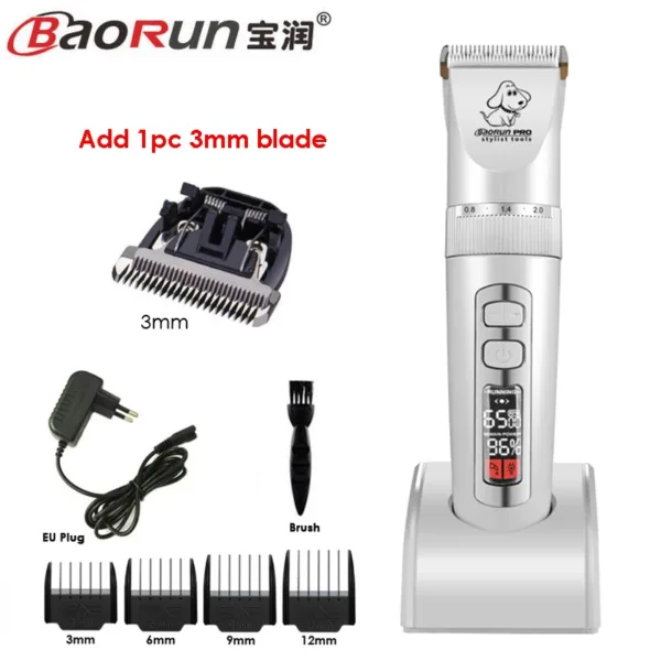 BaoRun P9 Professional Pet Dog Hair Trimmer LCD Display Electric Shaver Pet Grooming Hair Clipper Integrated Blades 3/6/9/12mm