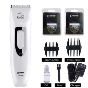 Give your pets a salon-quality grooming experience at home with the Codos KP3000 Professional Pet Hair Trimmer. Designed for both cats and dogs, this powerful and reliable grooming clipper delivers smooth, precise cutting for all coat types — from short fur to thick hair.