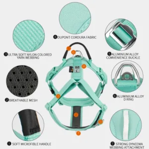 Crafted from high-quality nylon and DUPONT CORDURA materials, this durable harness ensures comfort and control whether you’re walking, running, or hiking with your pet.