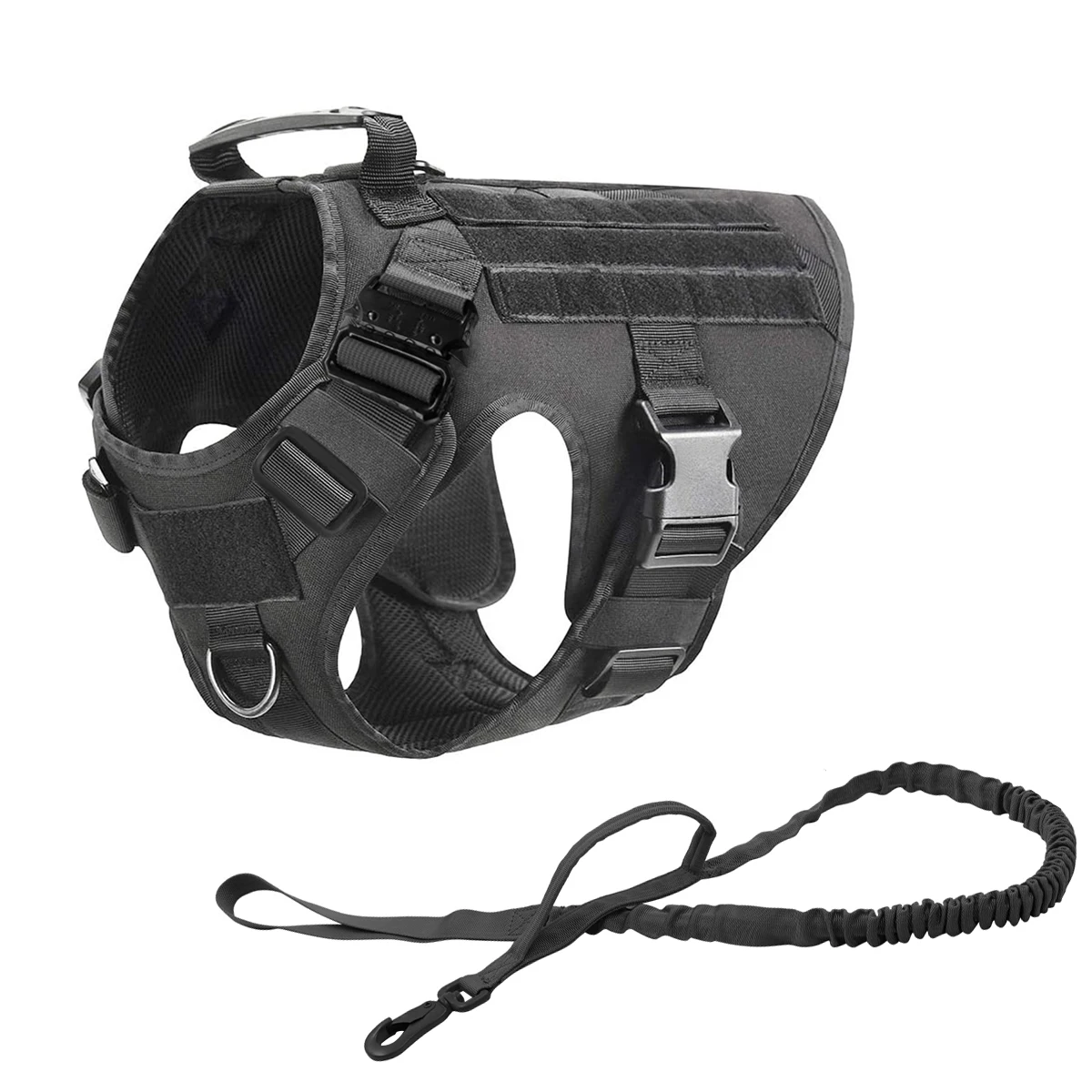 Tactical Dog Harness Leash Collar Molle Pouches for Medium Large Dogs Training Military Pet Vest Adjustable Service Dog Harness